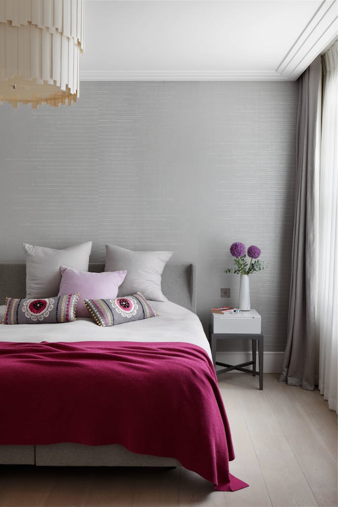 In both the master bedroom and guest bedroom a calm, neutral backdrop designed with soft shades and subtle textures is invigorated with splashes of bold colour through art and accessories.