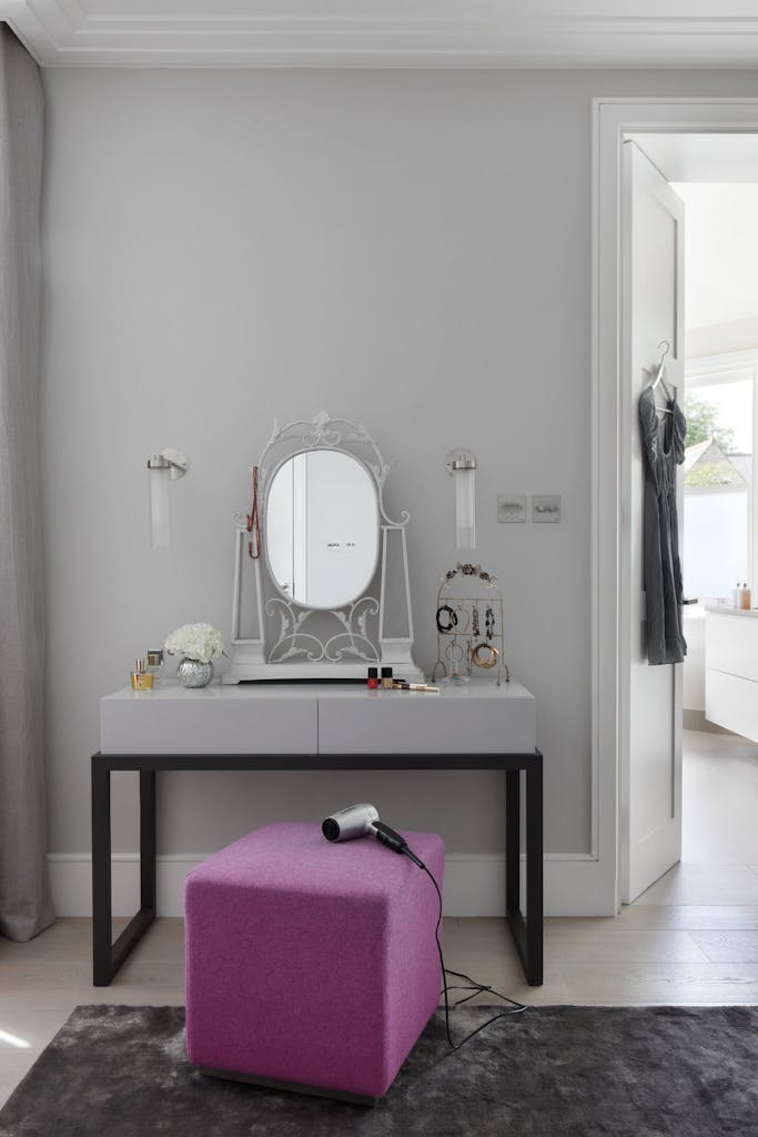 On the ground floor the staircase was relocated to the middle of the house, creating an elegant hallway and enabling an easy flow between the cosy sitting room at the front and the spectacular kitchen-diner-family room at the rear. A Velux window at the top of the stairwell allows light to flood through the floors.