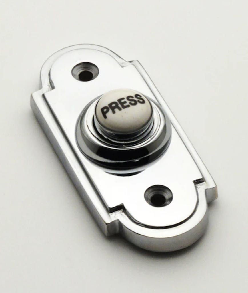Bell push A bell push offers a neat and finished look to any doorway and can be matched to coordinate with all your external ironmongery to create a beautifully cohesive aesthetic. Most period properties originally had a bell push and many options to restore or replace this style of doorbell exist today. Selecting the size very much depends on the whether it will be placed within the door frame or on the wall and with a vast range of shapes, finishes and sounds available, it remains a characterful choice for many front doors.