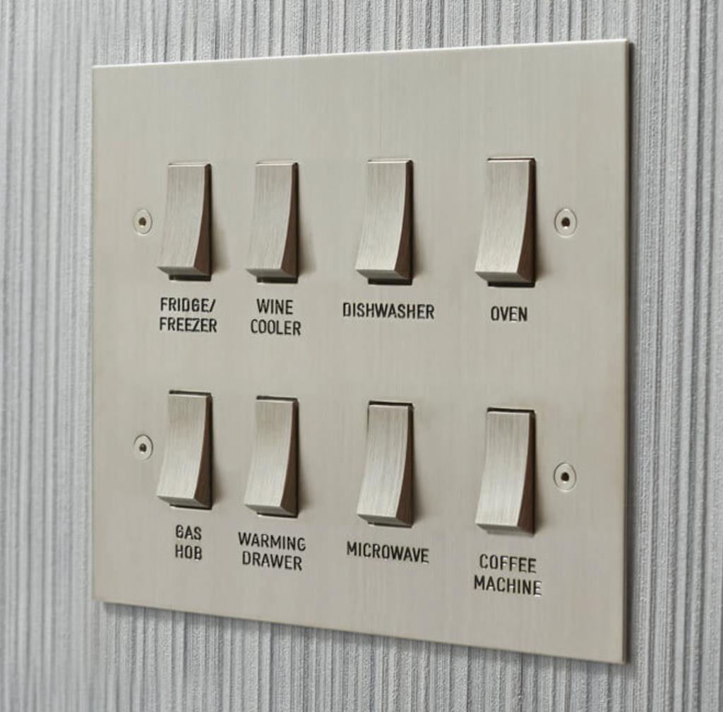 To create a truly bespoke look and feel, it is worth knowing the different types of switches you can select from. Each have a unique aesthetic and options include rocker switches, retractive switches, push button (bell push), toggle and dimmer switches.