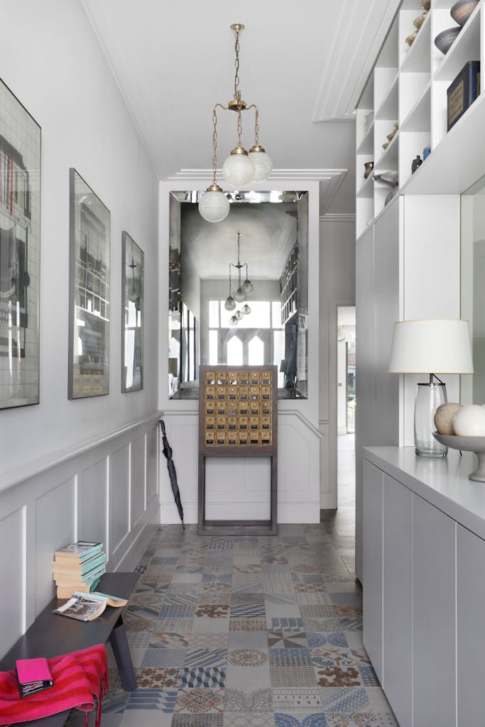 Investing in geometric floor tiles is a stylish, contemporary hallway decorating idea that creates the illusion of space and can complement your chosen colour scheme. Maximise the natural light with crittal glass doors, a large mirror and furniture that blends into the rest of the scheme.
