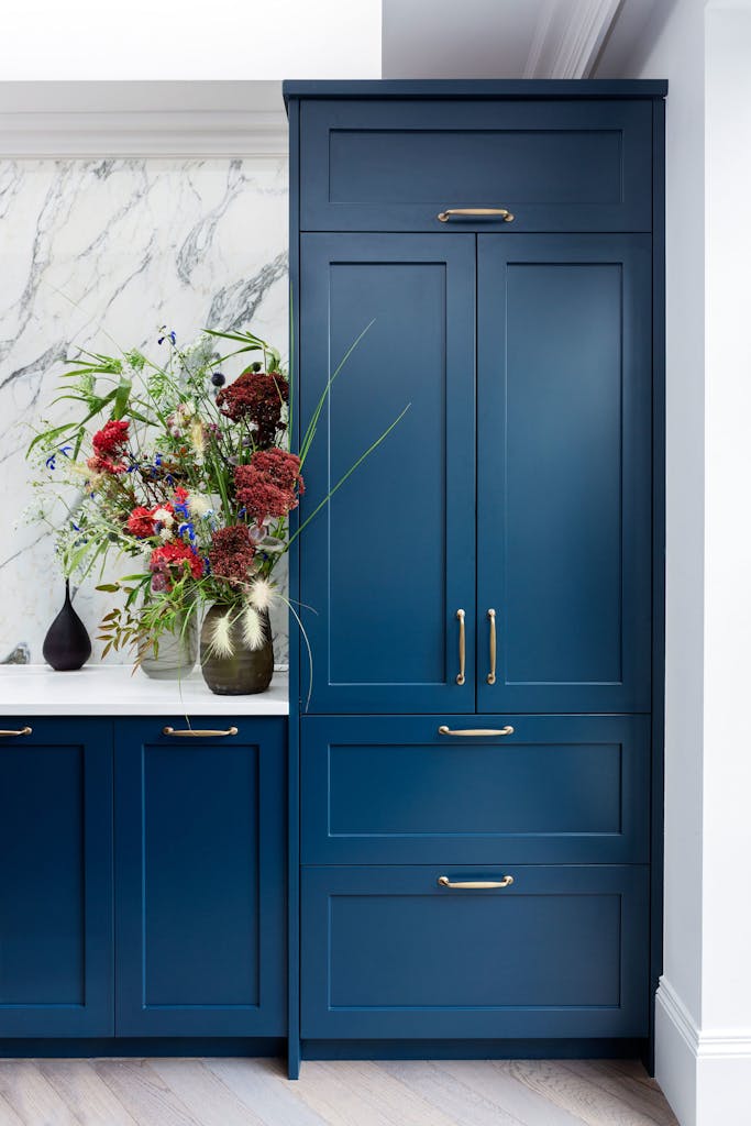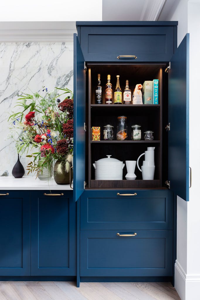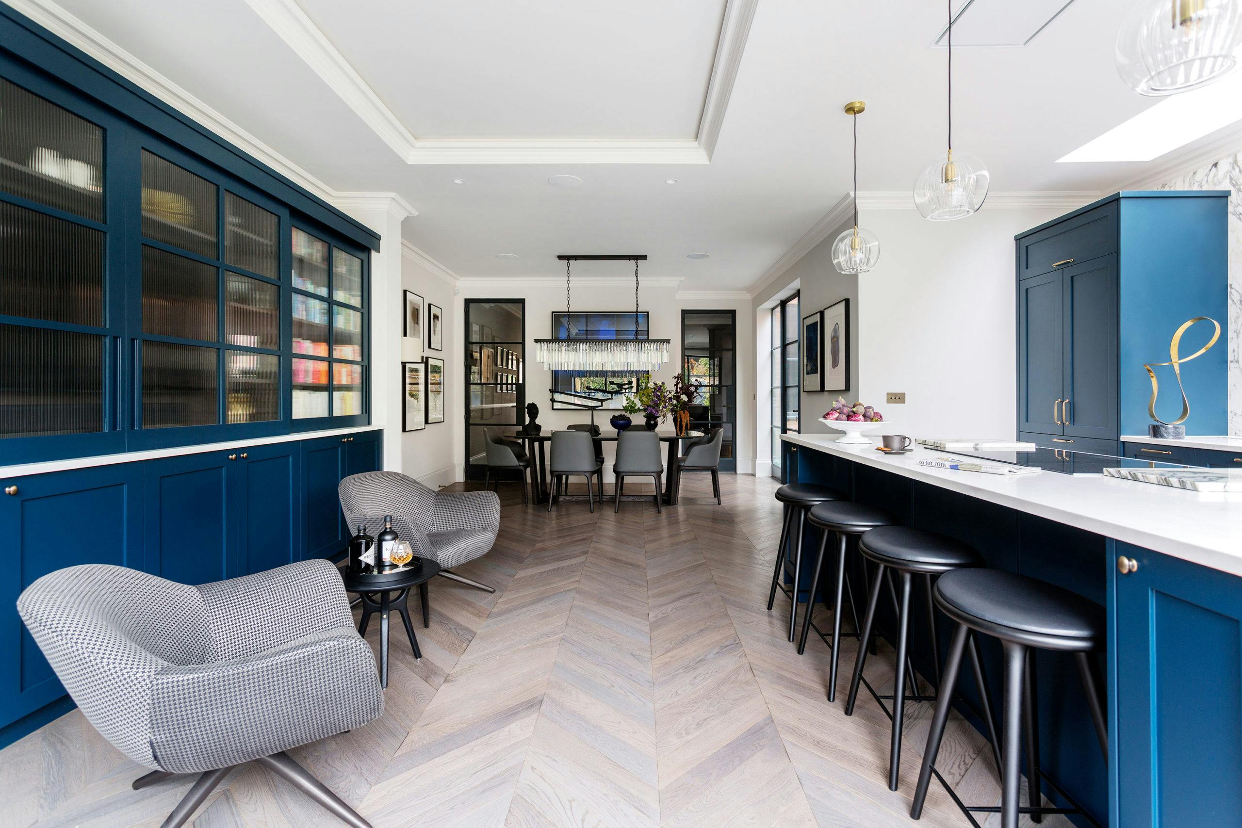 Ultra-marine blue became the starting point for the kitchen and ground floor design – this fresh hue extends to the garden to unite indoors and outdoors.