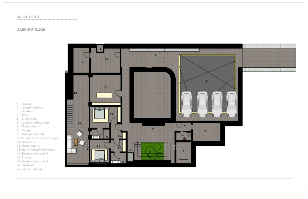 This futuristic home in the inclusive enclave of Saint George’s Hill, is designed to perfectly blend into the environment. Driveway access leads to a subterranean car park and the entire hill-top house is concealed from public view by surrounding woodland. Appropriately titled, sparrows nest perches high above the surrounding landscape, especially the cantilevered study, which quite literally sails out into the tree space.