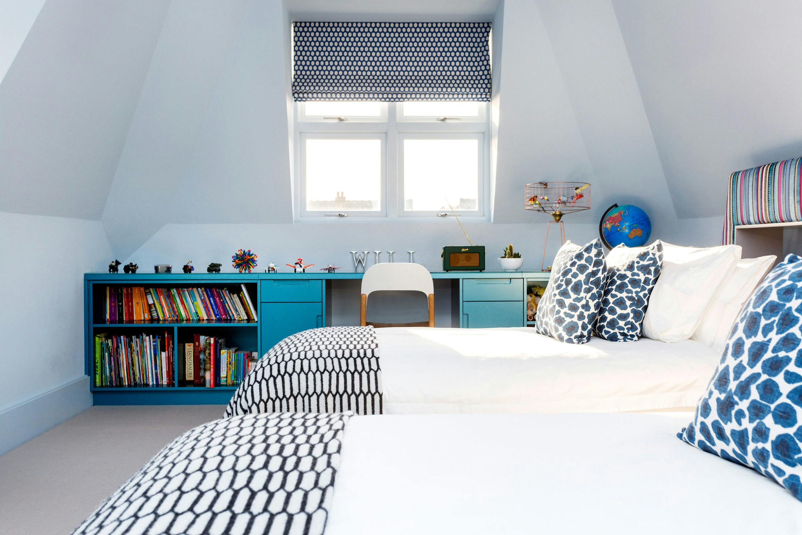 A vast skylight at the top of the stairs fills the upper floors with natural light, while the second floor extension allows for a beautiful master suite plus two quirky children’s bedrooms in the eaves.