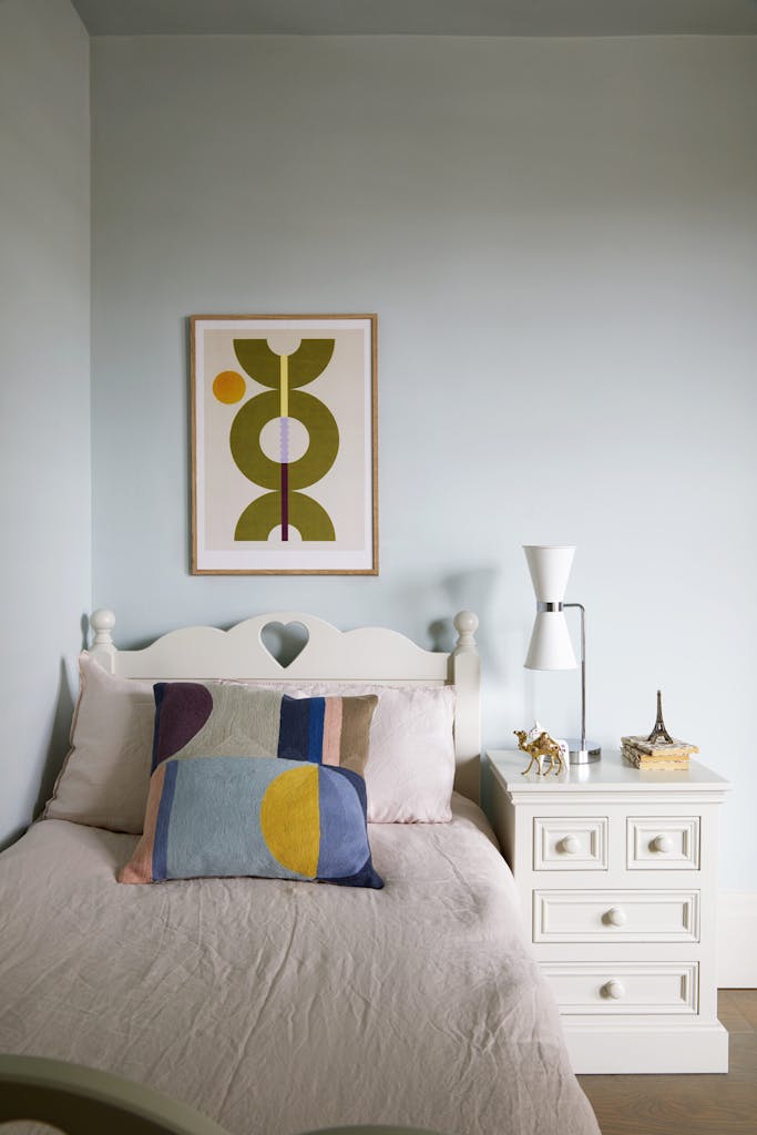 The removal of the eaves to create extra tall ceilings meant the kids bedrooms were given additional character and much needed clever storage. The bedrooms are vibrant and personalised, featuring unique touches like a magnetised wall behind dinosaur wallpaper for a boy’s room and architectural enhancements for a dramatic effect in the daughter’s room.